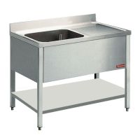 Typology : avec côtés Dimensions (mm) : 1000x700x850 mm Plan de travail en acier avec dosseret de 40 mm d’épaisseur Dosseret h 100 mm Avec cuve cm 40×40 Épaisseur du plan de travail 4 cm
